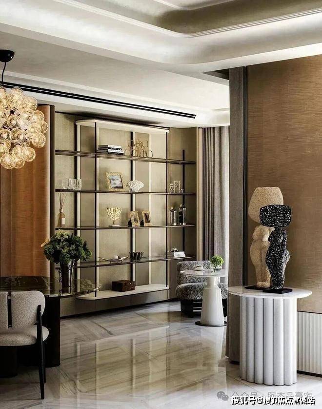 空间层次感:客餐厅选用 “错层规划”(提高空间层次),装备独立 “家庭厅”(可作为儿童活动区或私家会客区),厨房为中西分厨(中厨关闭 + 西厨敞开,西厨岛台选用大理石原料,调配复古铜制水龙头);